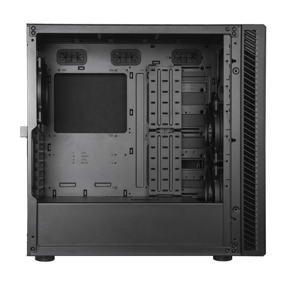Distinctive front bezel design embedded with sound maze soundproofing technique, achieving balance between great airflow and low acoustic noise level Drastically reduces noise with integrated sound dampening material allocated on the front and side panels, top dust filter and bottom of the chassis |