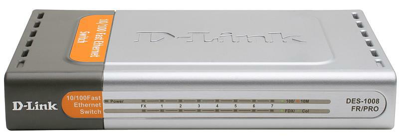 DES-1008FR/PRO 7-Port 10/100M + 1-Port 100Base-FX SC BiDi Single-Mode 20KM Fiber (TX:1310nm/ RX:1550nm) Unmanaged Standalone Switch