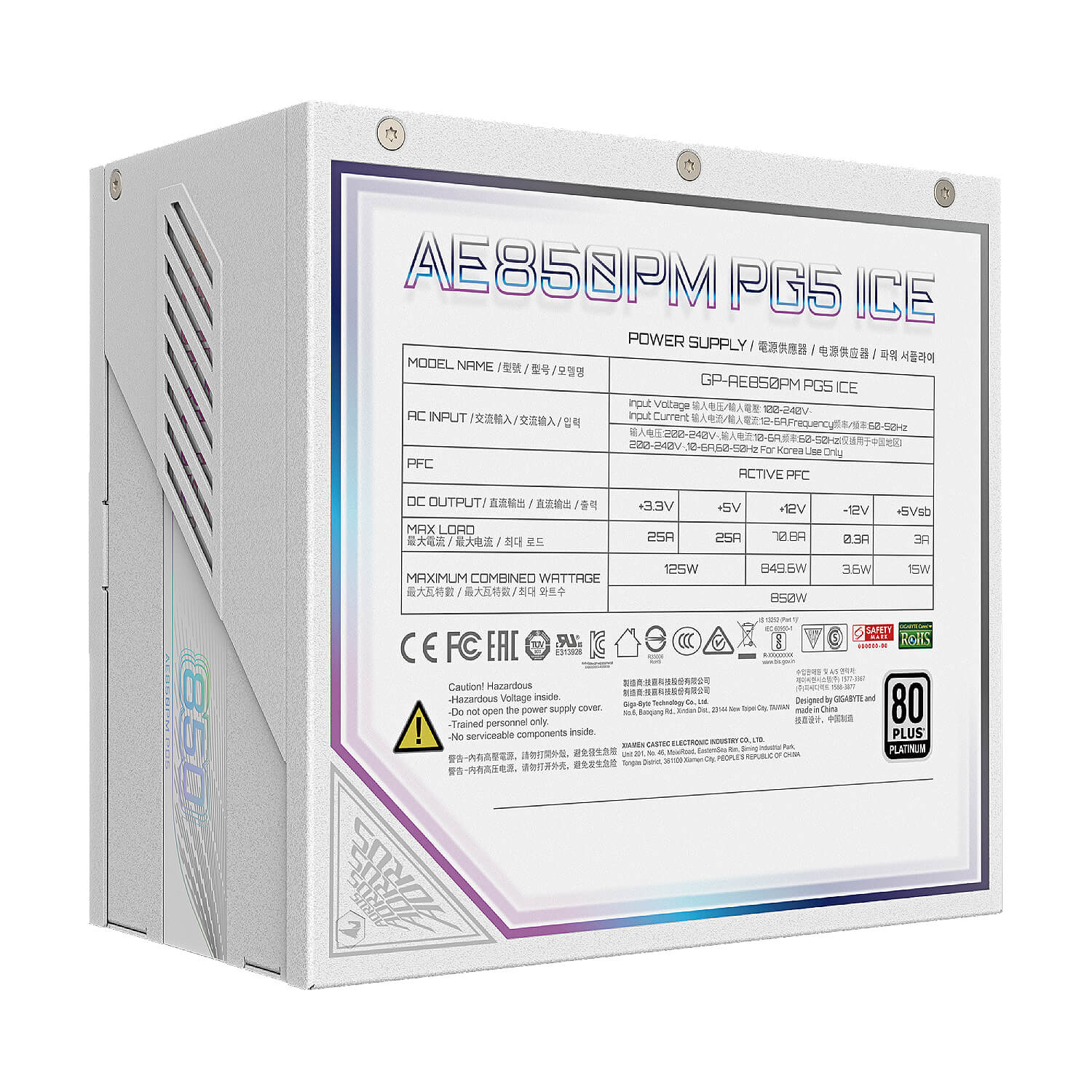 Gigabyte PSU 850W AORUS ELITE P850W 80+ Platinum Modular ICE. GP-AE850PM-PG5-ICE