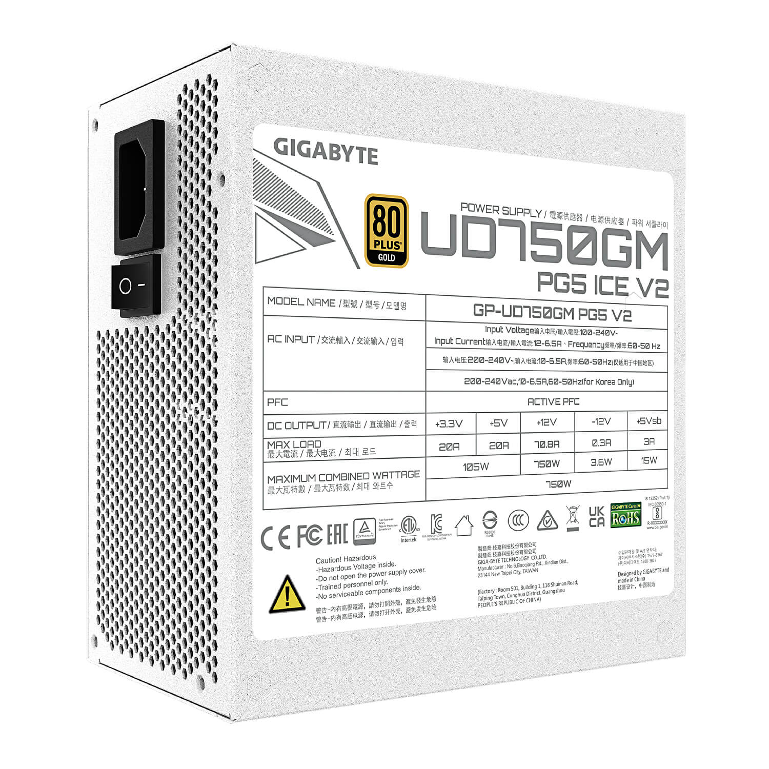 Gigabyte PSU 750W Gold 80+ PCIE 5.1 UD750GM PG5 V2 ICE. GP-UD750GM-PG5-V2-ICE