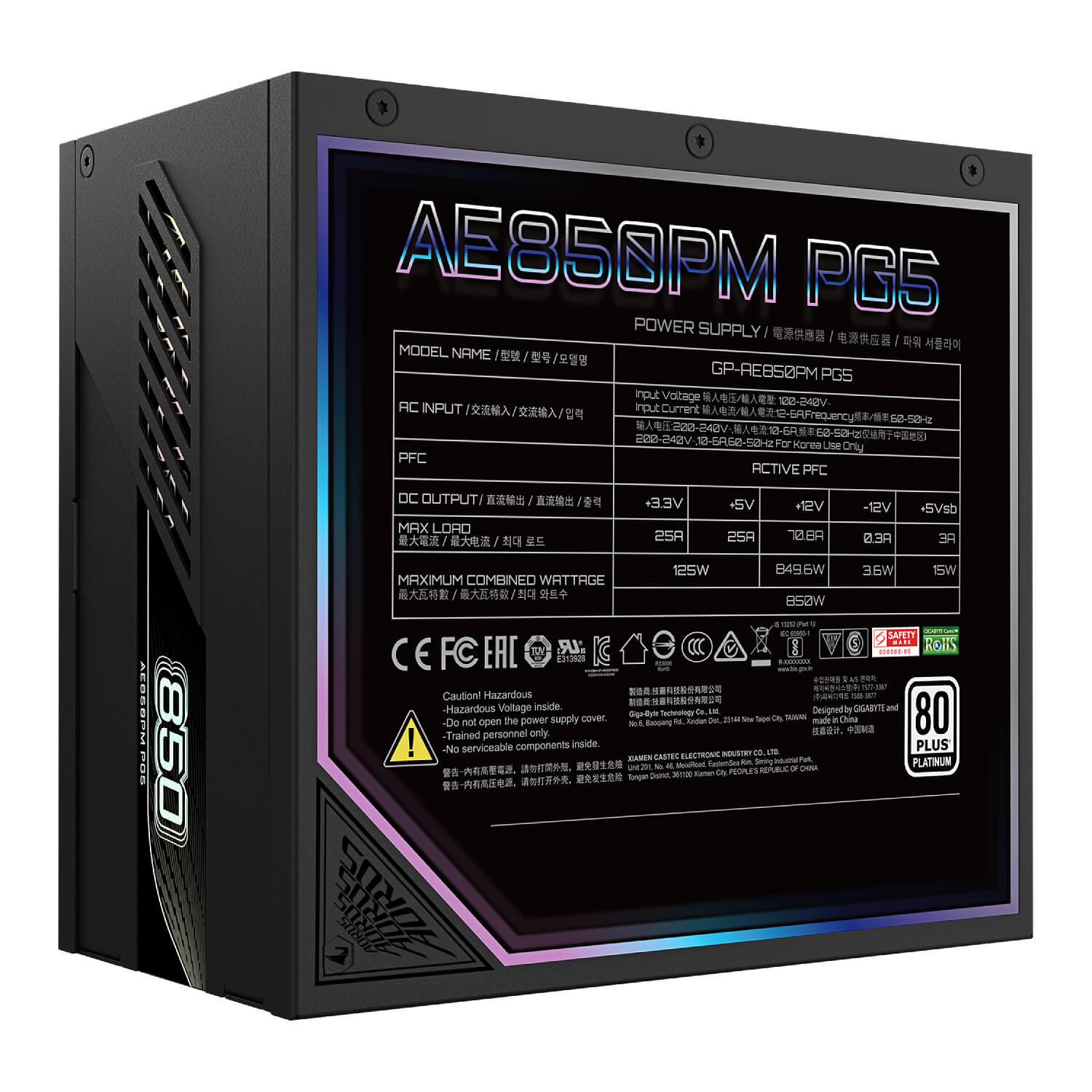 Gigabyte PSU 850W AORUS ELITE P850W 80+ Platinum Modular ATX Active PFC 120mm